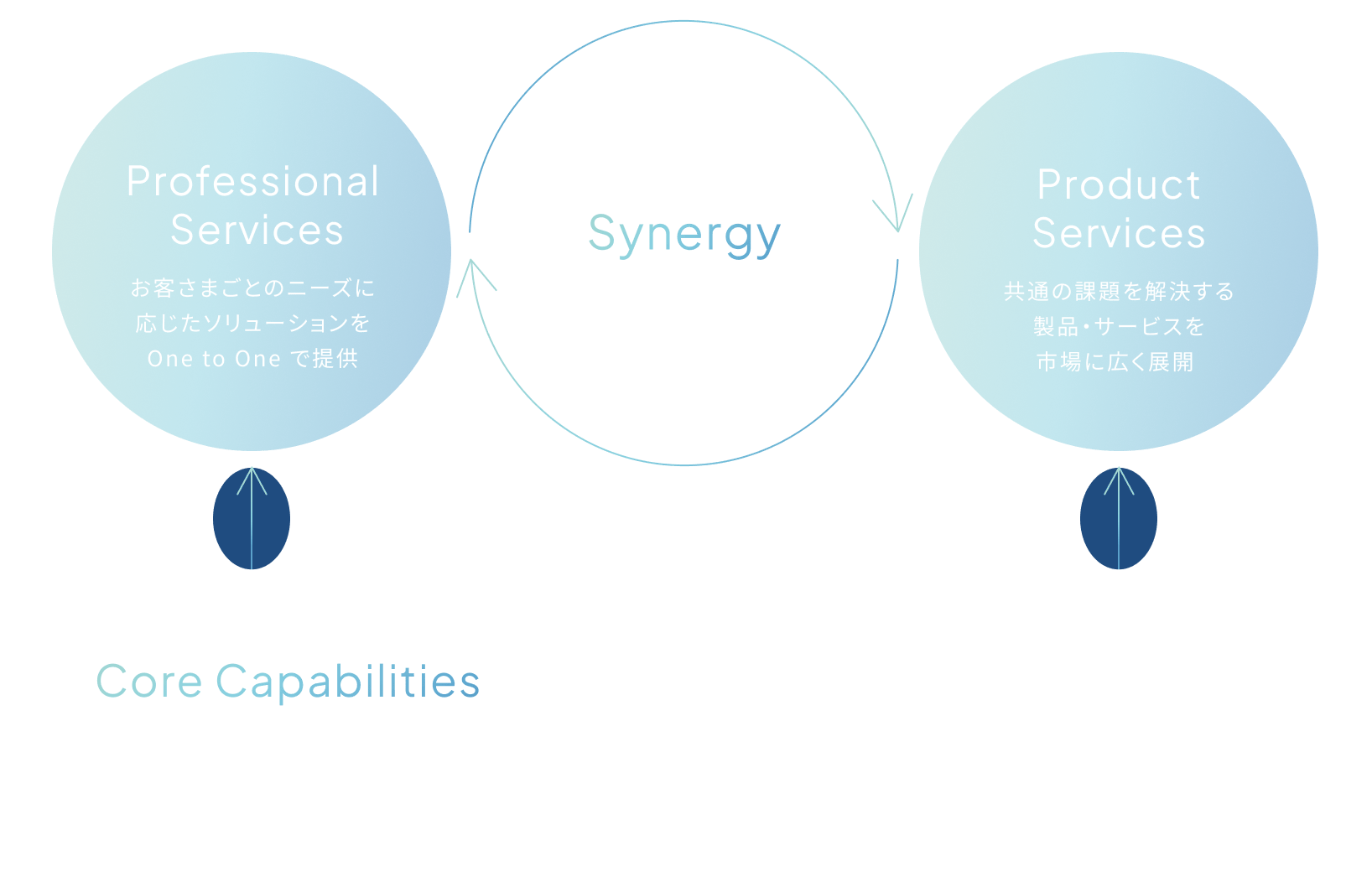 2つの領域で得た知見を還元しあいながら、お客さまを幅広くサポートしています。