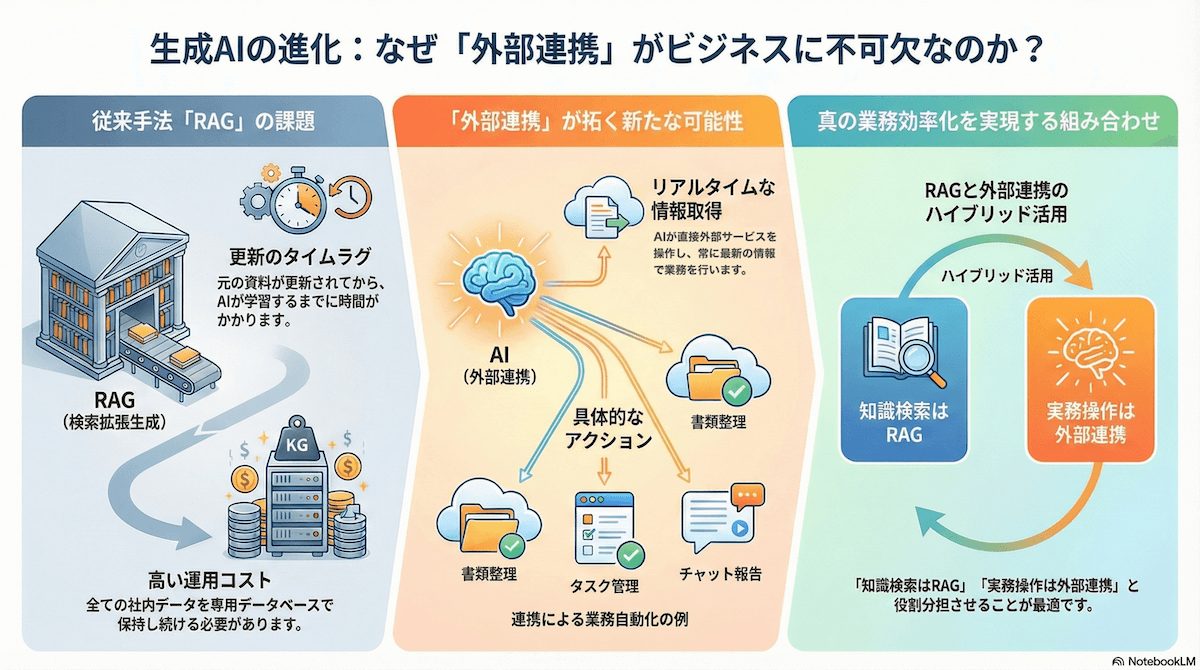 そのため、単純にRAGから外部連携に切り替えるのではなく、