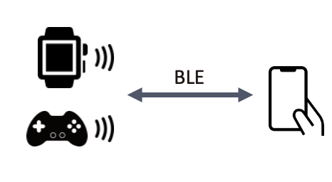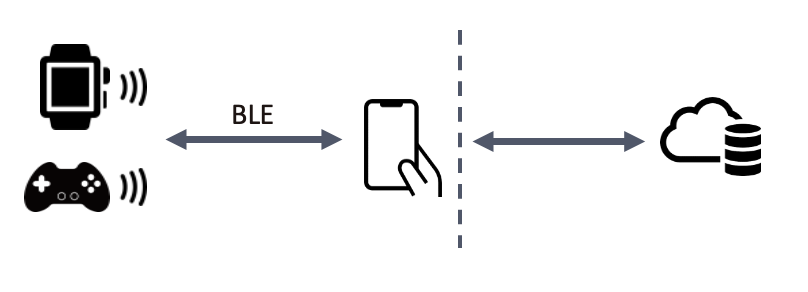 デバイスの主な通信手段がBluetoothの場合の構成です。主に以下のような2パターンが考えられます。