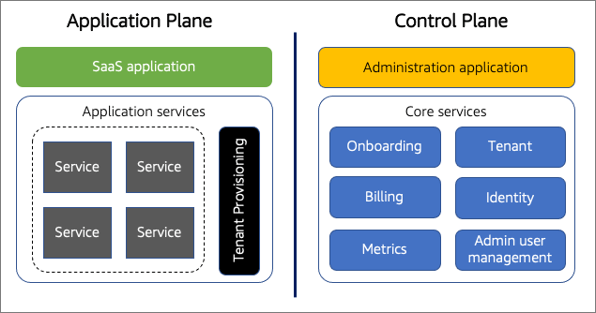 「アプリケーションプレーン」と「コントロールプレーン」は、SaaSのアーキテクチャを考える際に用いられる考え方で、AWSのホワイトペーパー「SaaSアーキテクチャの基礎」でも定義されています。