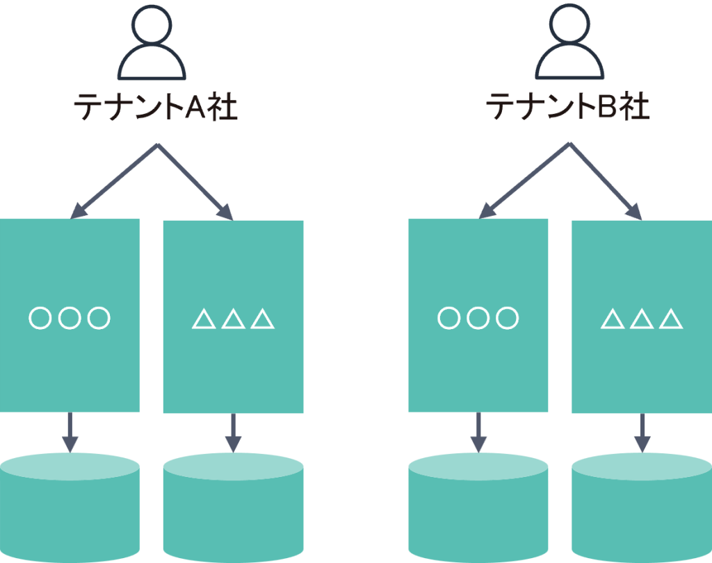 - サーバーは共通だが、テナントごとにデータベースを分ける