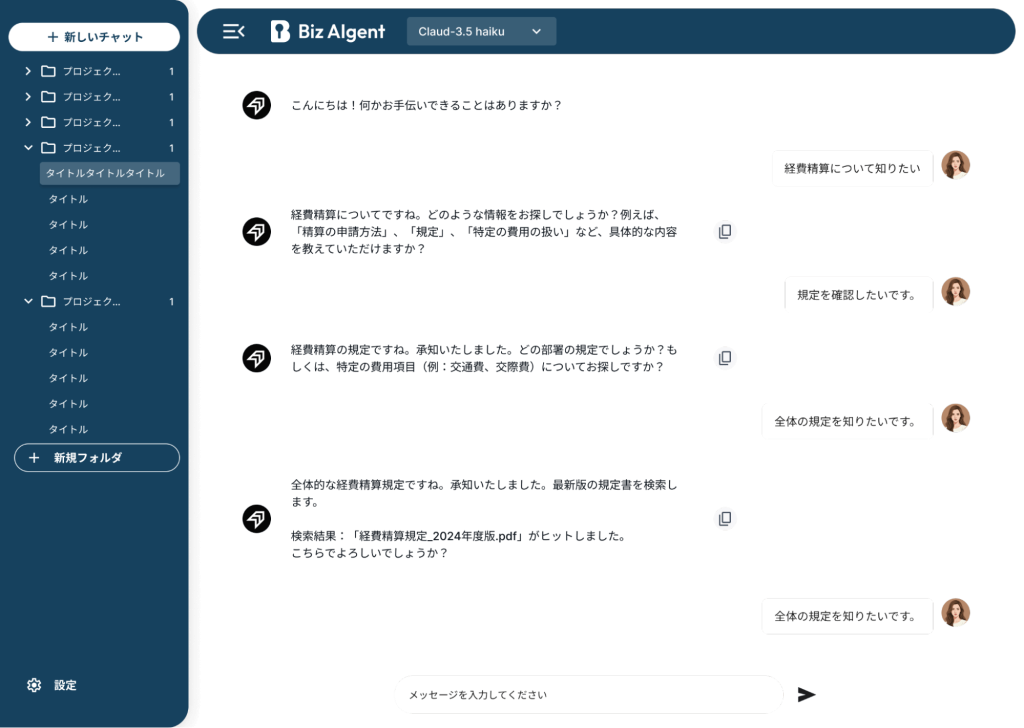 一企業がゼロからこうしたポイントを踏まえたシステムを構築するのは難易度が高いといえます。しかし、BizAIgentを活用すれば、個別の技術要素を組み合わせる複雑さを解消し、手軽に生成AIによる業務効率化を実現できます。
