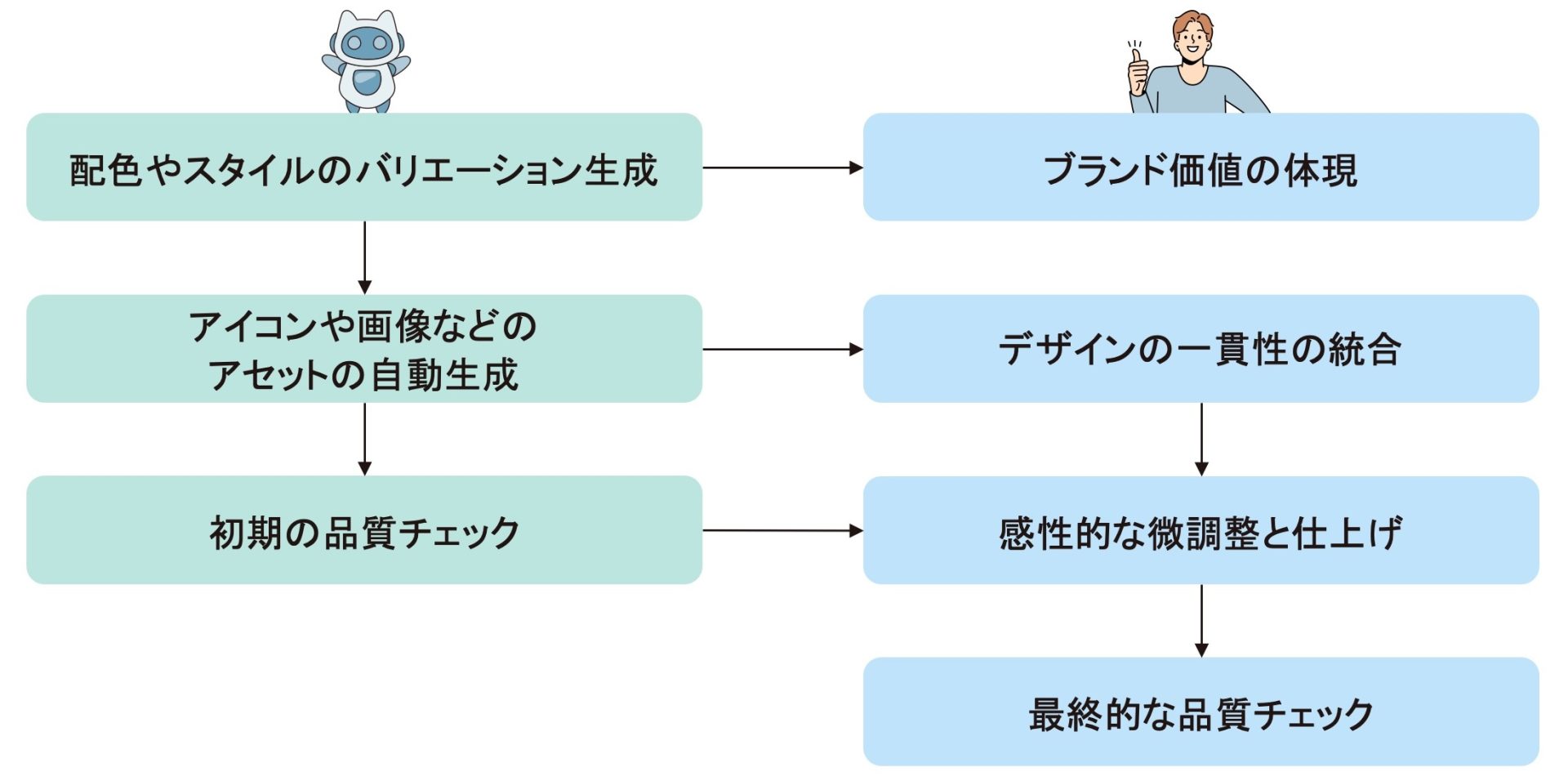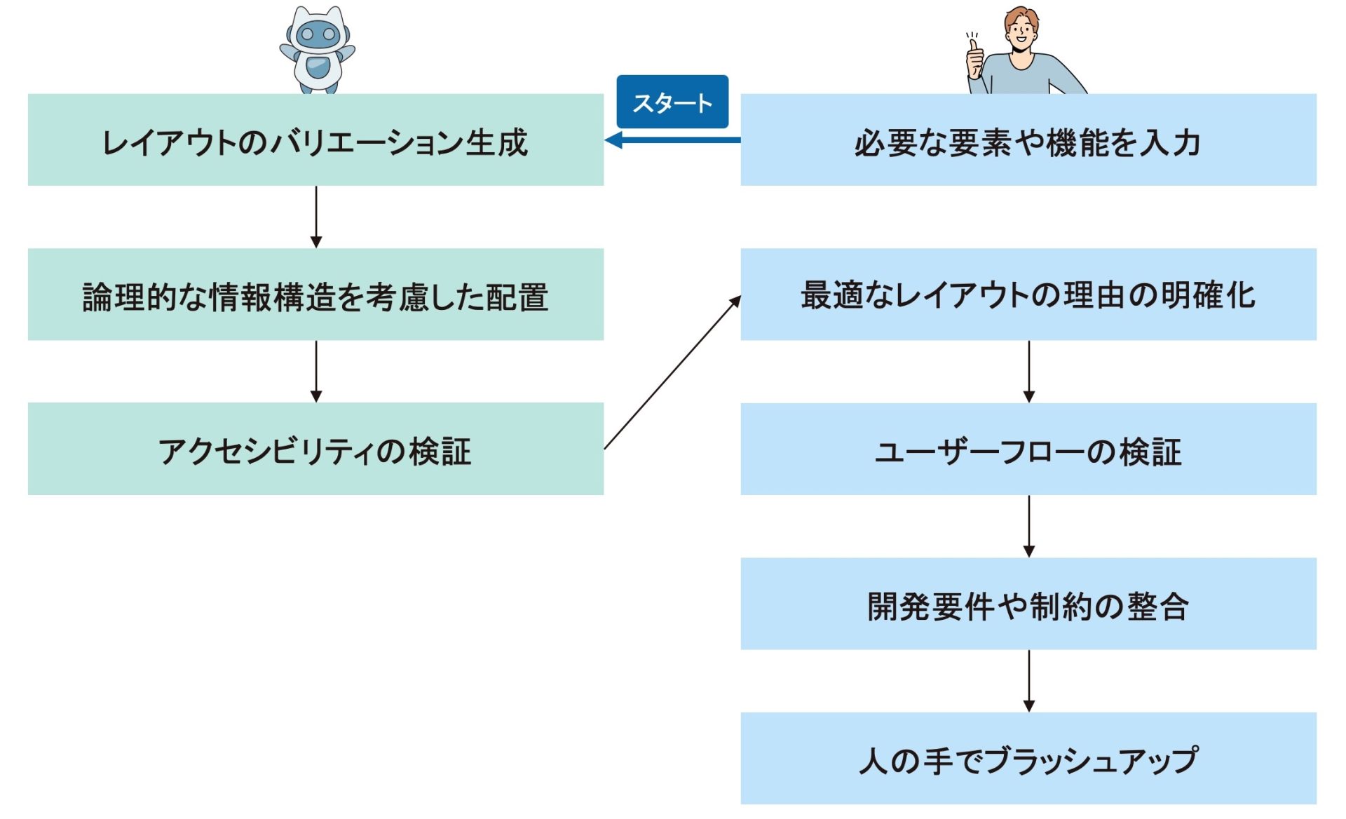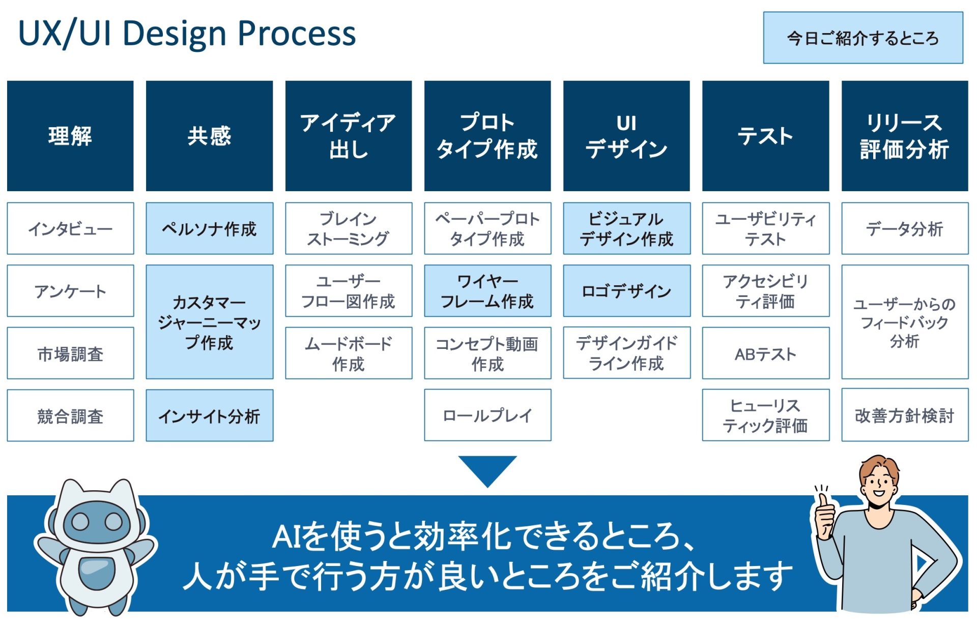 UX/UIデザインプロセスを効率よく精度を上げるためには、人とAIでどのように作業分担をすると良いでしょうか。