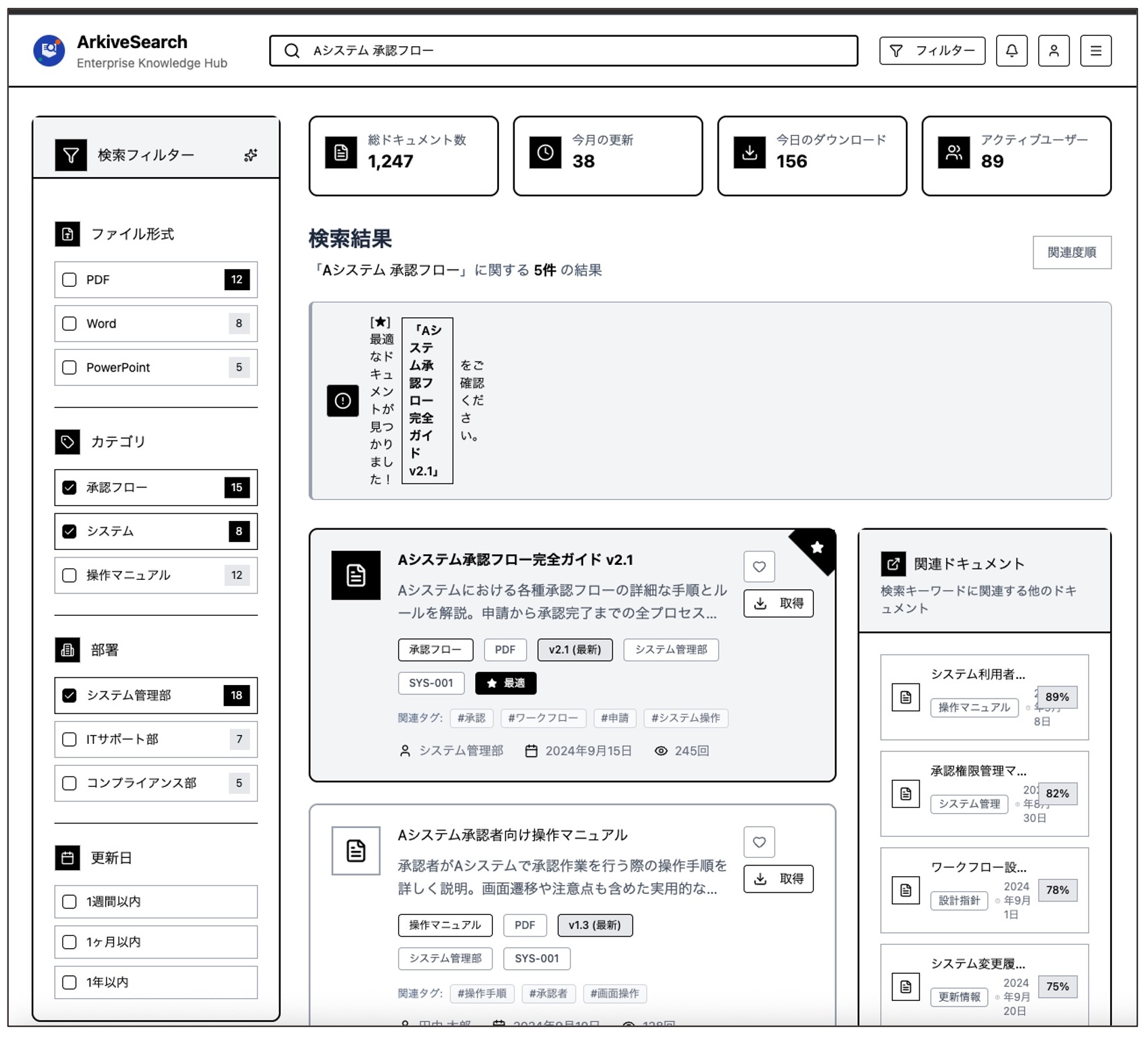 - ダッシュボード要素:「全ドキュメント数」「今日の更新数」といった、管理画面らしい統計情報も提案されました。