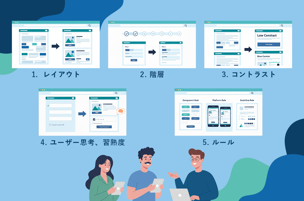 直感的な操作フロー、入力補助、記憶負荷の軽減などを考慮します。 - ルール