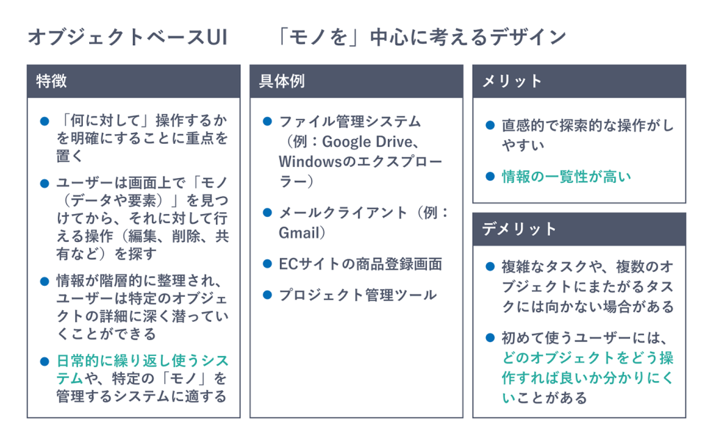 ユーザーが操作したい「モノ(オブジェクト)」を中心にUIを設計します 。