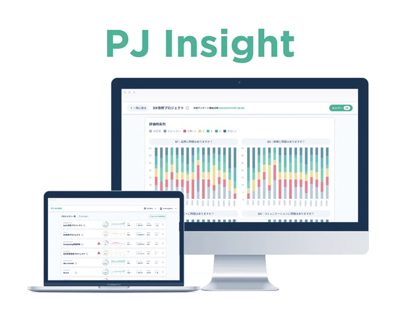 PJ Insightは、従来の進捗管理手法では難しかったプロジェクトに対するメンバーの本音や不安を収集し、時系列データとして可視化する一風変わったプロジェクトマネジメントツールです。